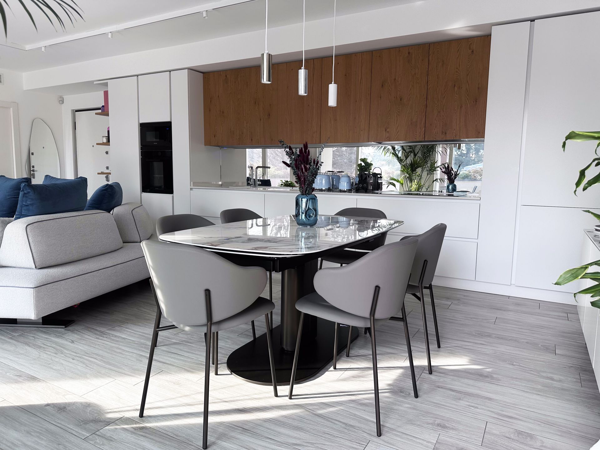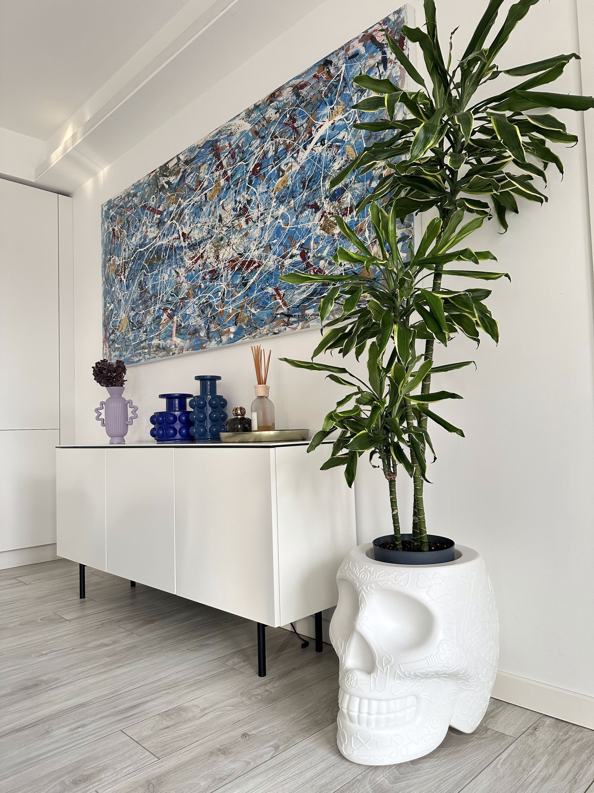 ButtonIn questa elegante dimora contemporanea, a pochi km da Milano, la giustapposizione tra elementi minimalisti e i colori pop regna sovrana in armonia con i gusti eclettici dei suoi proprietari. Quin in foto un dettaglio della zona giorno.